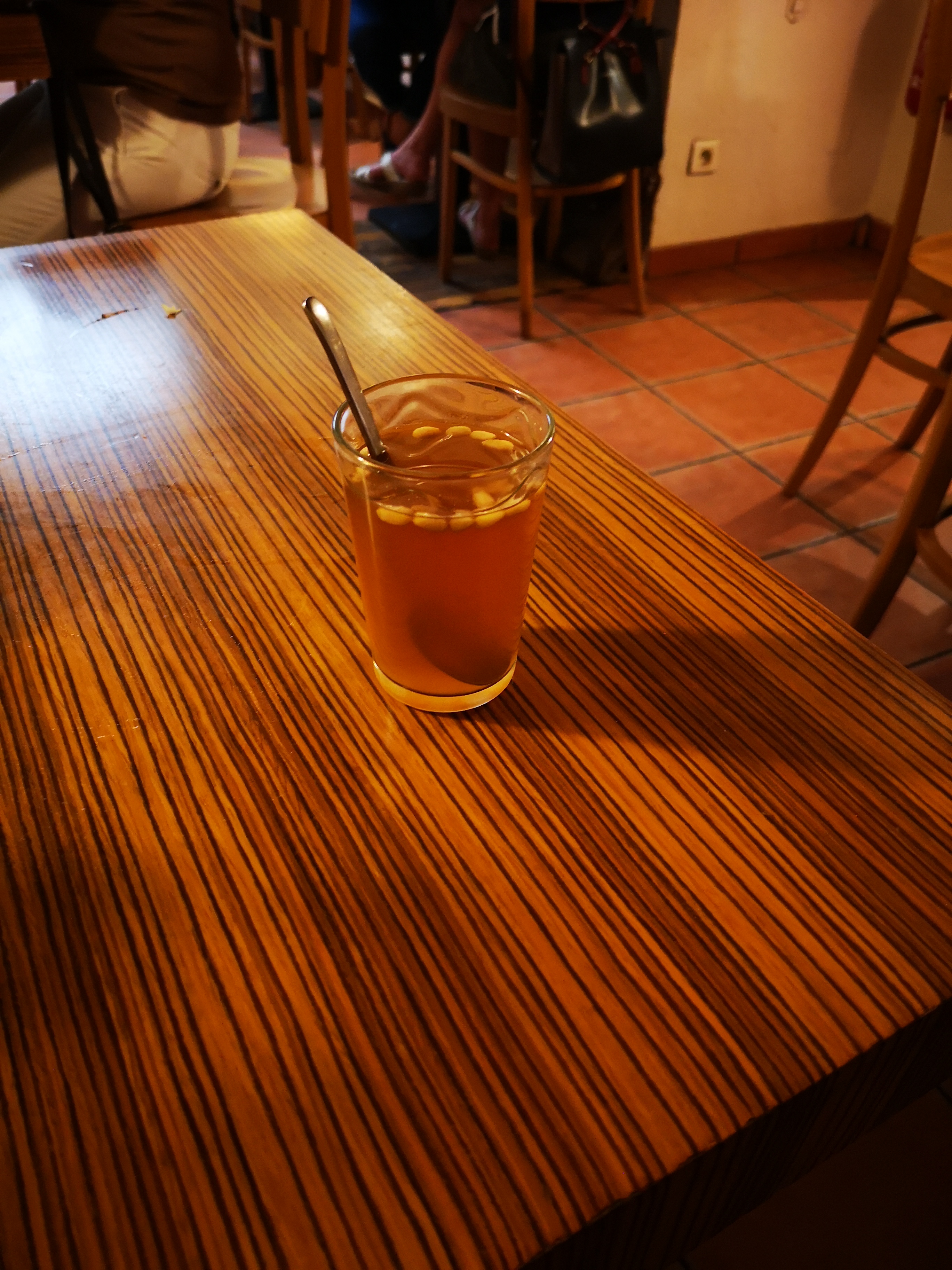 Sandwich super goûteux et bien garnis. Le thé à la menthe avec les pignons le top