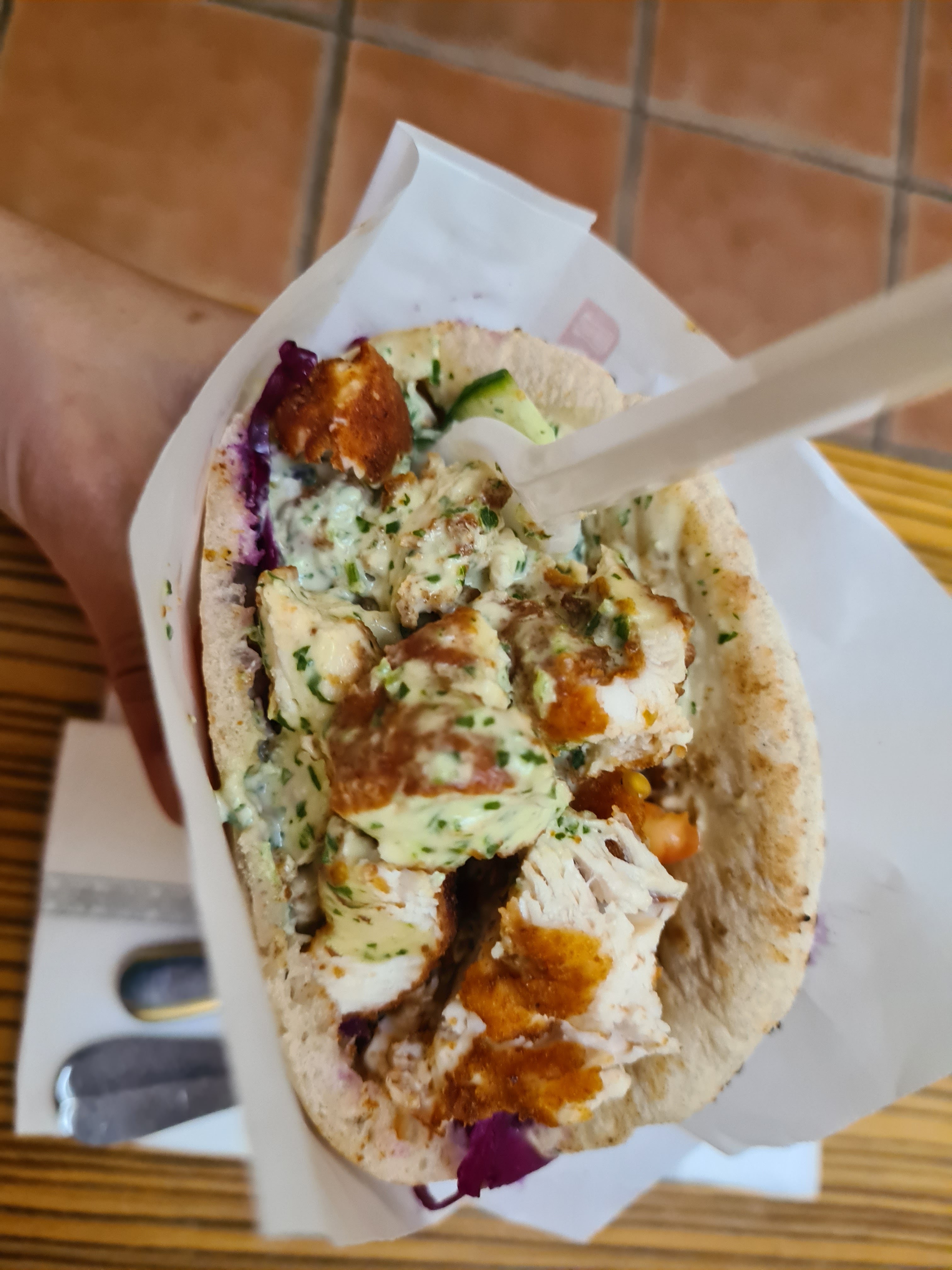 Très bonne pita, un peu cher. L'harissa est top !